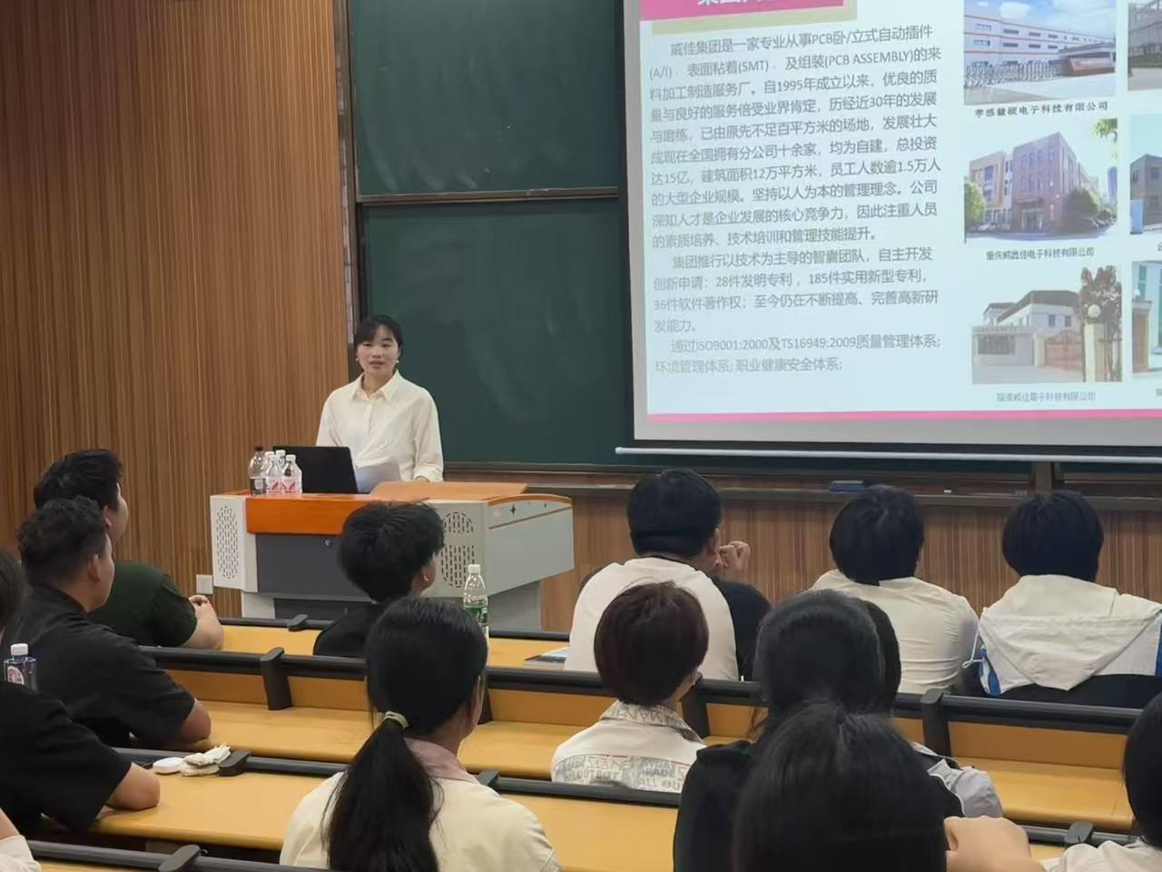 宣讲会上,慧硕电子人力资源经理刘维娜通过详实的数据、精彩的案例和生动的视频,向同学们全面展示了公司的发展历程、企业文化、业务版图以及未来战略规划。针对同学们关心的职业发展问题,企业详细介绍了本次招聘的技术员、储备干部等多个核心岗位,以及极具吸引力的薪酬福利体系、完善的培训晋升通道,让同学们对企业的人才培养模式有了更直观的认识。