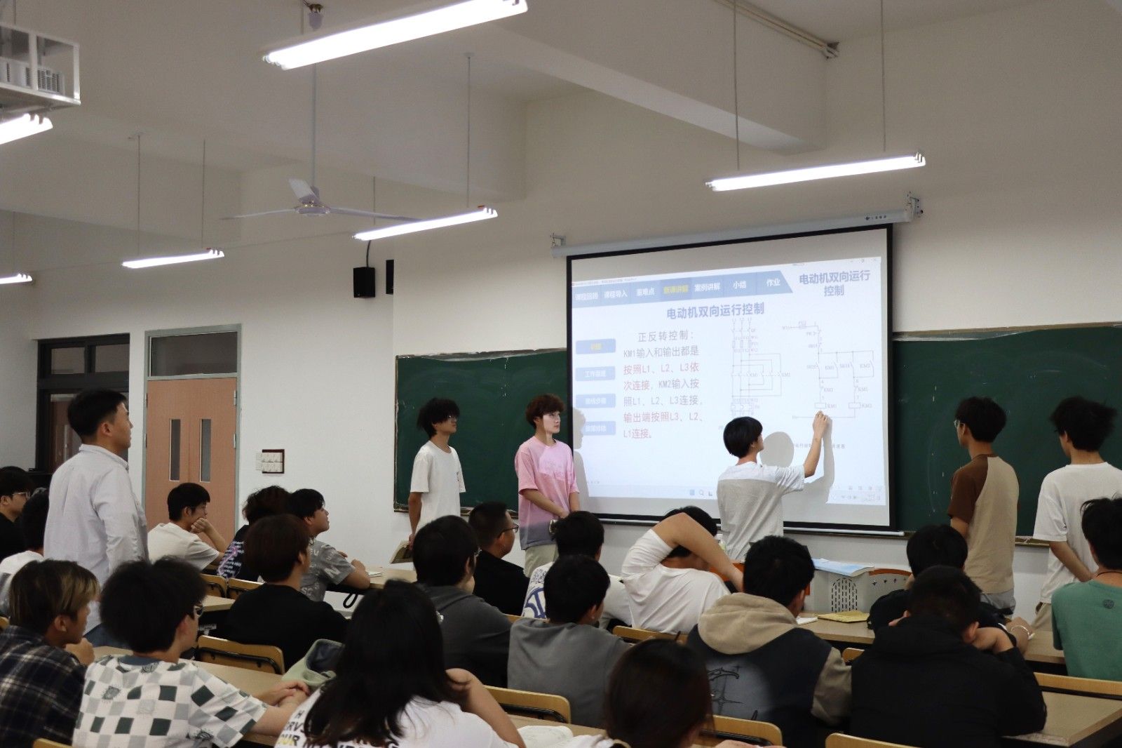 走进陈虎生的《电机与电气控制技术》课堂,仿佛踏入了一个充满活力的实验室。讲台上,陈老师正手持一个自制的电路模型,引导学生们观察电流流向。屏幕中,三维仿真软件实时模拟着电机运行状态。教室一角,几名学生正围着一台老式电机,尝试用刚学的知识诊断故障。