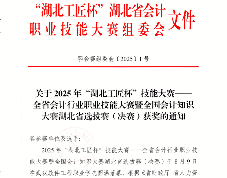 2025年“湖北工匠杯”技能大赛——全省会计行业职业技能大赛暨全国会计知识大赛湖北省选拔赛总决赛于2025年8月8日-8月9日在武汉软件工程职业学院举行。全省包含高等学府、央企、国企、行政事业单位在内的120支决赛队伍经过激励角逐,由朱葛丹、方荷、张英、刘佳雯四位老师组成的湖北孝感美珈职业学院团队荣获团体二等奖;其中朱葛丹、方荷两位老师荣获个人三等奖。四位老师优异的表现充分展现了精湛的专业技能和良好的职业素养。