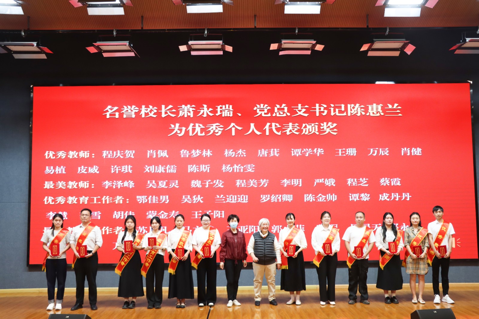 名誉校长萧永瑞女士、党总支陈书记为“最美教师”“最美教育工作者”“优秀教师”“优秀教育工作者”代表颁奖。