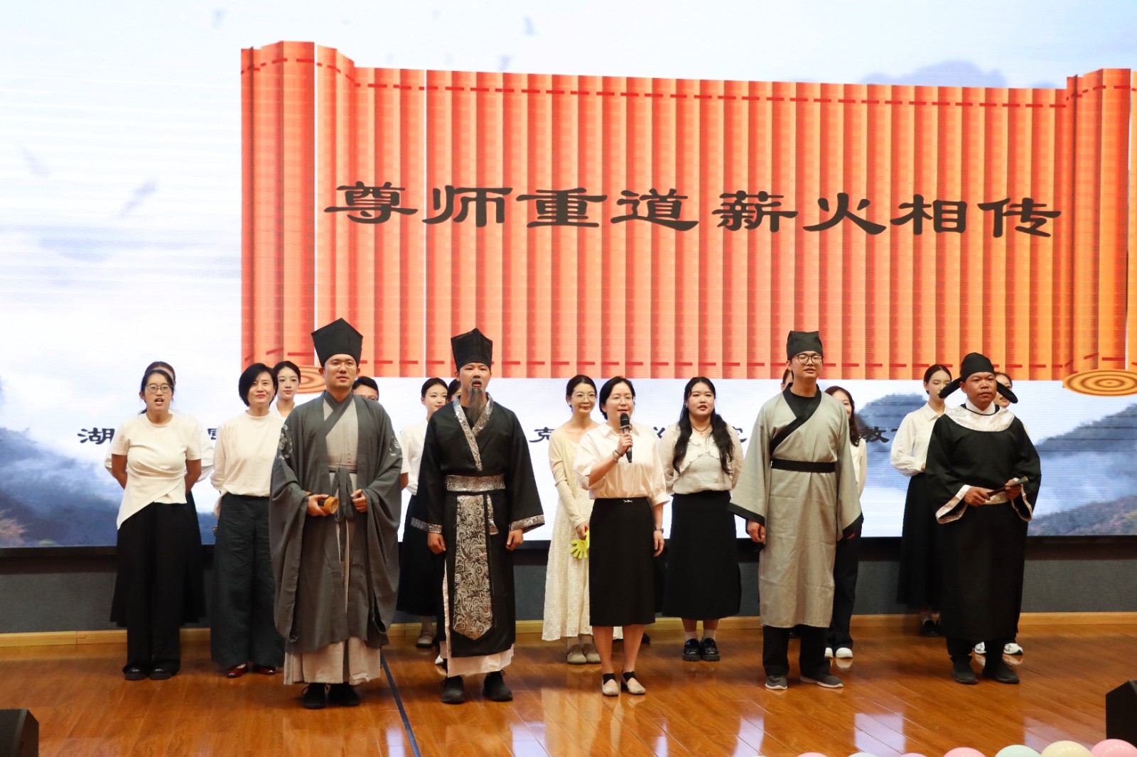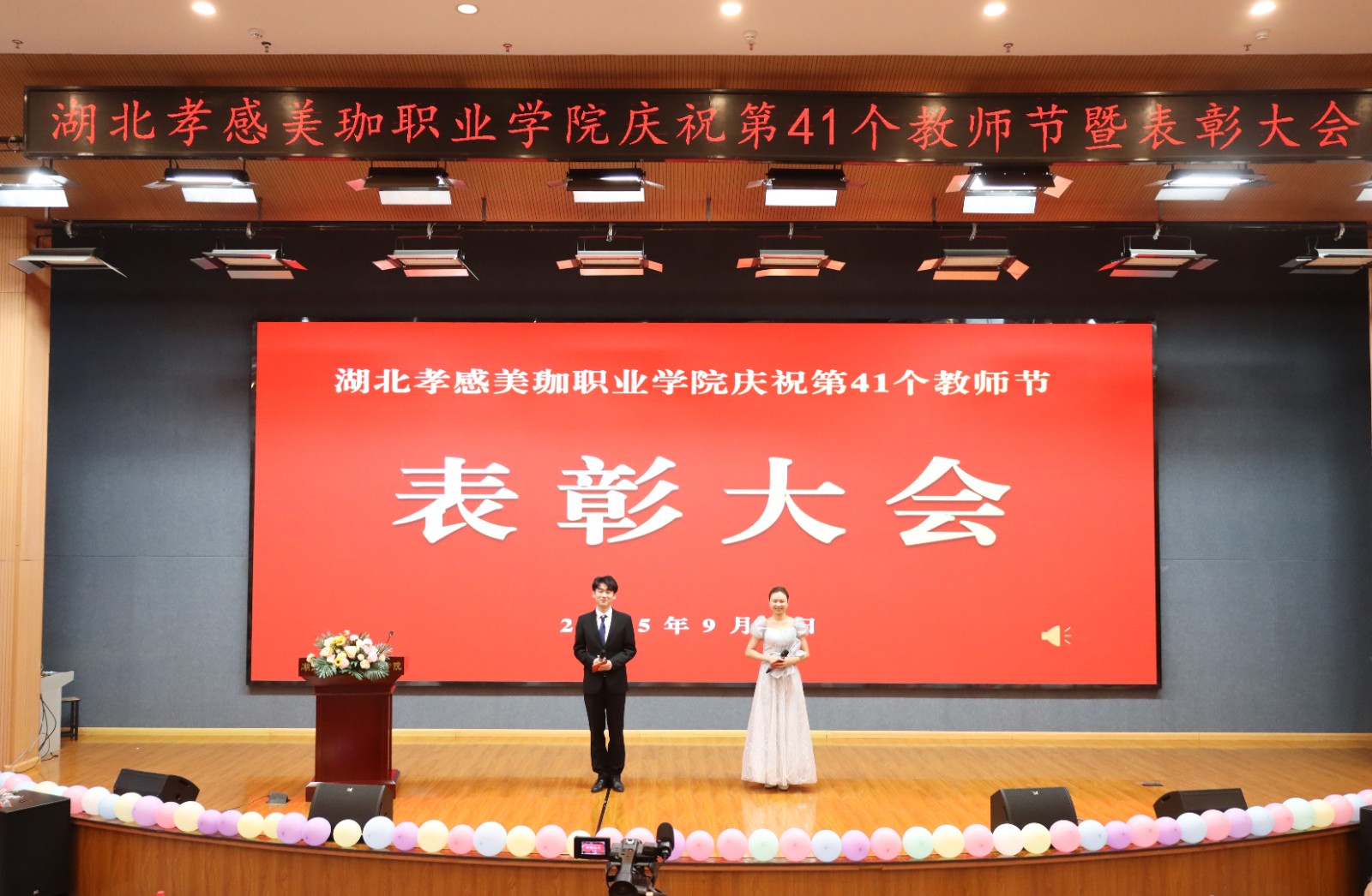 颁奖过程中,穿插了各学院精心准备的节目。国际商业学院、外国语学院选送的节目《敬师守初心,逐光向未来》深情表达了学子对老师的感恩之情;医事科技学院师生带来的歌舞《奔跑的青春》、歌曲联唱充分展现了美珈的活力与激情;智能制造学院的《爱在美珈 四季予你》诠释出对学校深厚的情谊,传递了对学校美好的祝福;信息技术学院的大合唱《明天会更好》唱出对学校未来发展的坚定信心;马克思主义学院选送的节目 《尊师重道 薪火相传》压轴出场,用古今对话的创新表达,深刻诠释了中华民族尊师重教的优良传统和教育事业薪火相传的伟大意义。