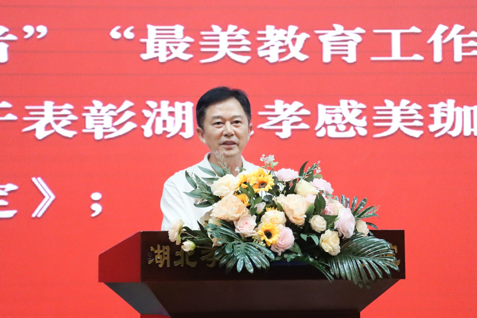 最后,名誉校长萧永瑞女士发表讲话。她向辛勤耕耘、默默奉献的全体教职员工,致以节日的问候和崇高的敬意,并向受到表彰的集体与个人表示最祝贺!她特别分享了自己受邀赴京观看纪念抗战胜利80周年盛大阅兵式的激动心情,从天安门广场上驶过的大国重器中,她看到的是国家日益强盛的雄厚实力,更是一个民族从苦难走向辉煌的伟大精神。她将八十年前青年学子为国赴死的壮举与今日教育者的使命相联系,深刻指出国家的沧桑巨变源于一代代人的艰苦奋斗,而美珈职院的发展正是祖国奋进历程的一个生动缩影。