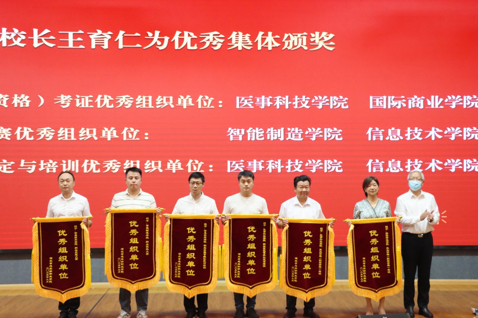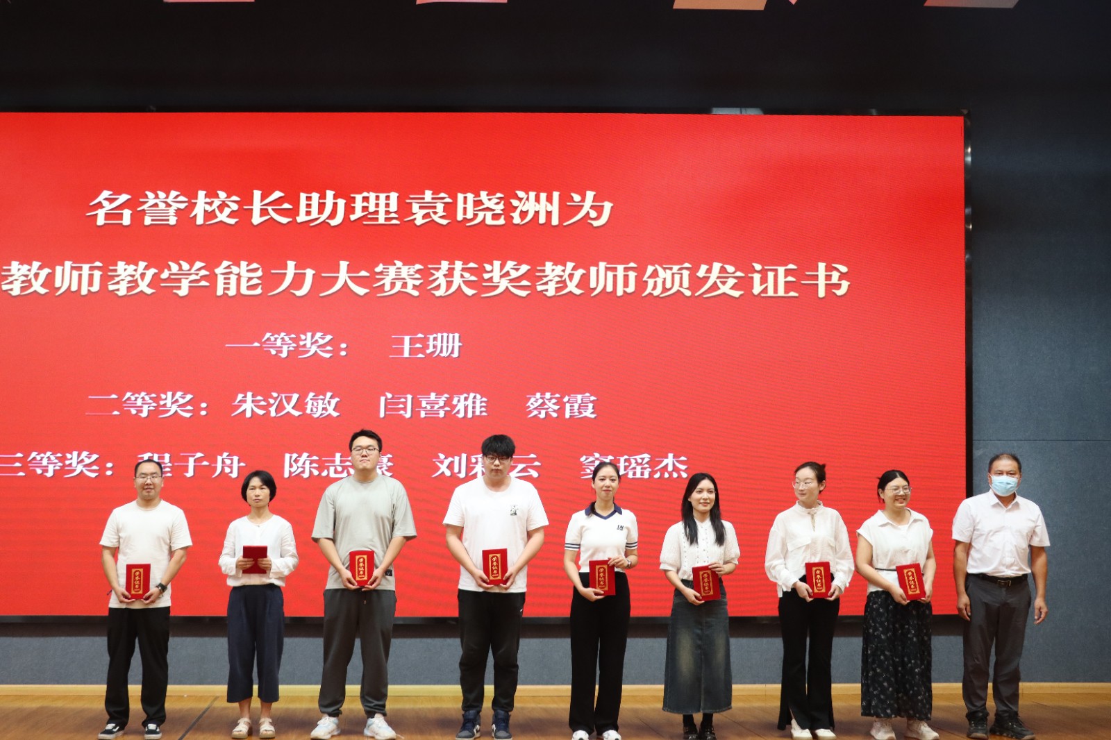 名誉校长助理袁晓洲为第四届教师教学能力大赛获奖教师颁发证书。