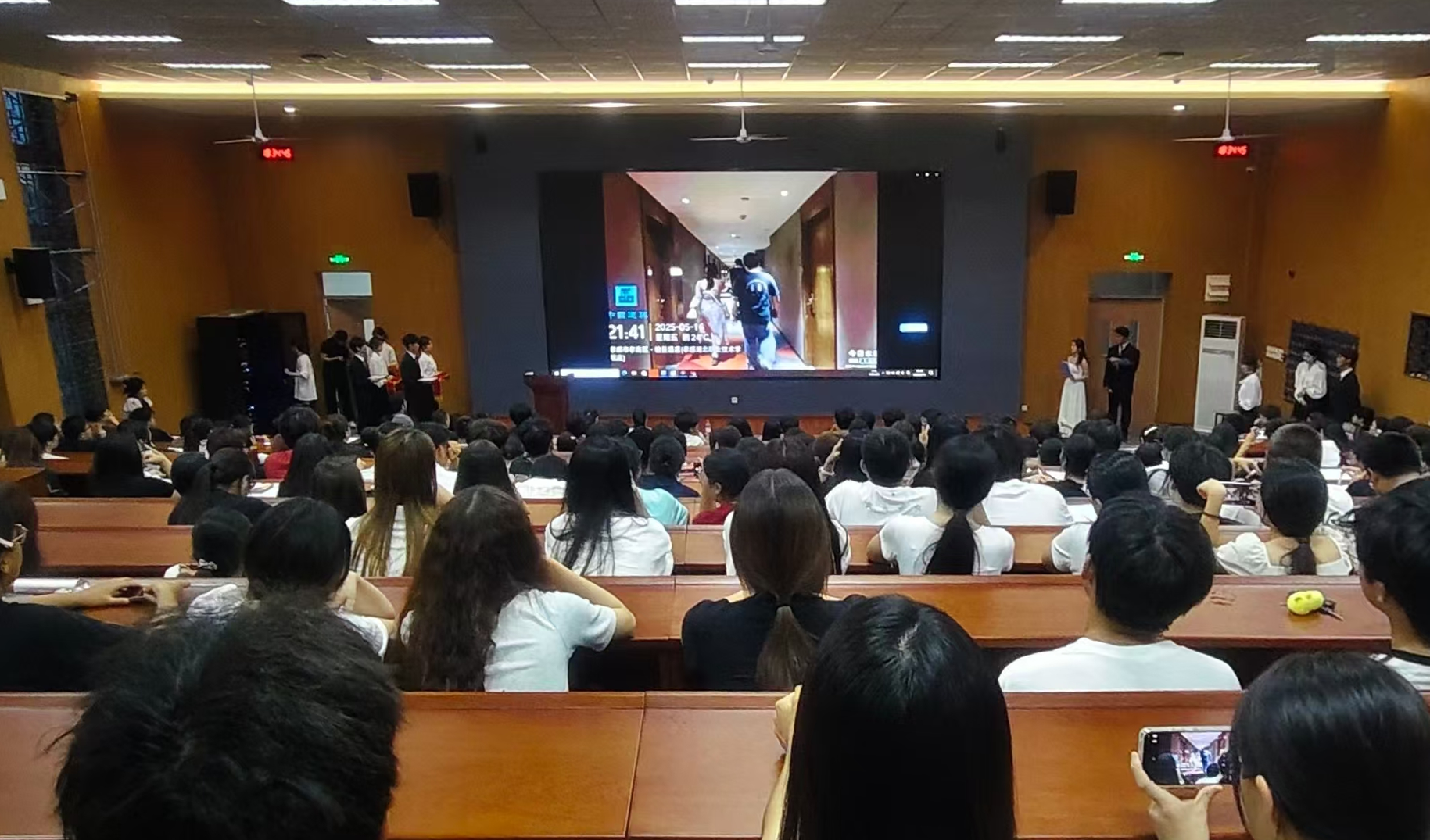 随后,大会播放了23级、24级学生的考证经历视频,视频中,学长学姐们分享了备考期间的时间规划、学习方法,以及克服困难的心得感悟。真实的故事与真挚的话语,为25级新生提供了宝贵的参考,也让受表彰学生的努力被更多人看见。