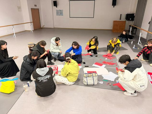 作为汉服社主要指导老师,郑颖慧老师提供了关键文化支撑:不仅详细讲解云肩的历史由来——从古代宫廷礼仪服饰的配饰,到民间祈福寓意的承载,让学子理解其“四方四合、吉祥如意”的文化内涵,还指导大家筛选适配的孝感雕花剪纸纹样,确保“蝶戏牡丹”云肩、“喜上眉梢”头饰等造型既符合传统美学,又凸显非遗特色。