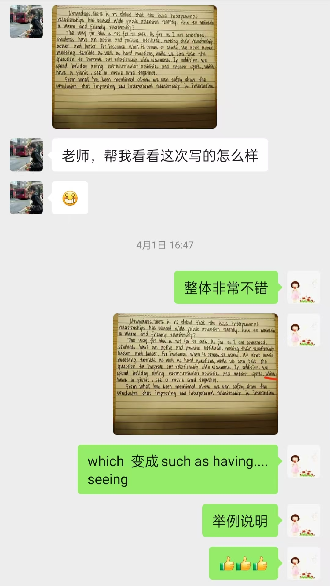 课后答疑,是陈老师与学生沟通的另一座桥梁。无论多忙,陈老师总会留出固定时间,耐心解答学生们的疑问。 其中就有一些准备专升本的学生,他们总是会被语法搞得晕头转向。陈老师了解到情况,推荐他们去旁听专升本选修课,让他们课余时间也能不断提升自己的做题能力。课后当学生提出跟语法相关的题目,陈老师也是很细心的解答,鼓励学生多听多提问,把知识内化成自己的。有学生不好意思在众人面前提问,陈老师便鼓励他们通过微信留言,她会在看到消息后第一时间回复。她常说:“学生的疑问,就是我教学的方向,能帮他们解决问题,我就很开心。”